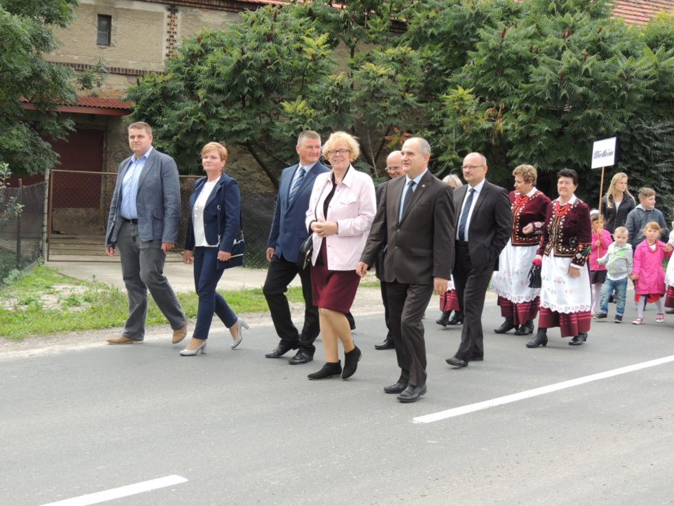 Tradycyjnie o godz. 14 ruszył korowód wieńcowy spod Urzędu Gminy Mietków na czele z pocztem sztandarowym OSP w Mietkowie, starościną dożynek Bogusławą Rojek i starostą dożynek Eugeniuszem Czerwonką, przedstawicielami władz Gminy Mietków oraz reprezentacjami poszczególnych wsi. Po ustawieniu wieńców rozpoczęła się polowa Msza Święta, którą celebrował proboszcz parafii pw. św. Wawrzyńca w Wawrzeńczycach, a koncelebrował proboszcz parafii pw. Niepokalanego Poczęcia Najświętszej Maryi Panny w Maniowie Wielkim. Bezpośrednio po Mszy starosta i starościna przekazali chleb dożynkowy na ręce Wójta Gminy Mietków. Po obrzędzie chleba przystąpiono do oceny stoisk promocyjnych wsi. Należy przyznać, że mieszkańcy poszczególnych wsi podeszli z wielkim zaangażowaniem do naszego rolniczego święta, za co serdecznie dziękujemy.