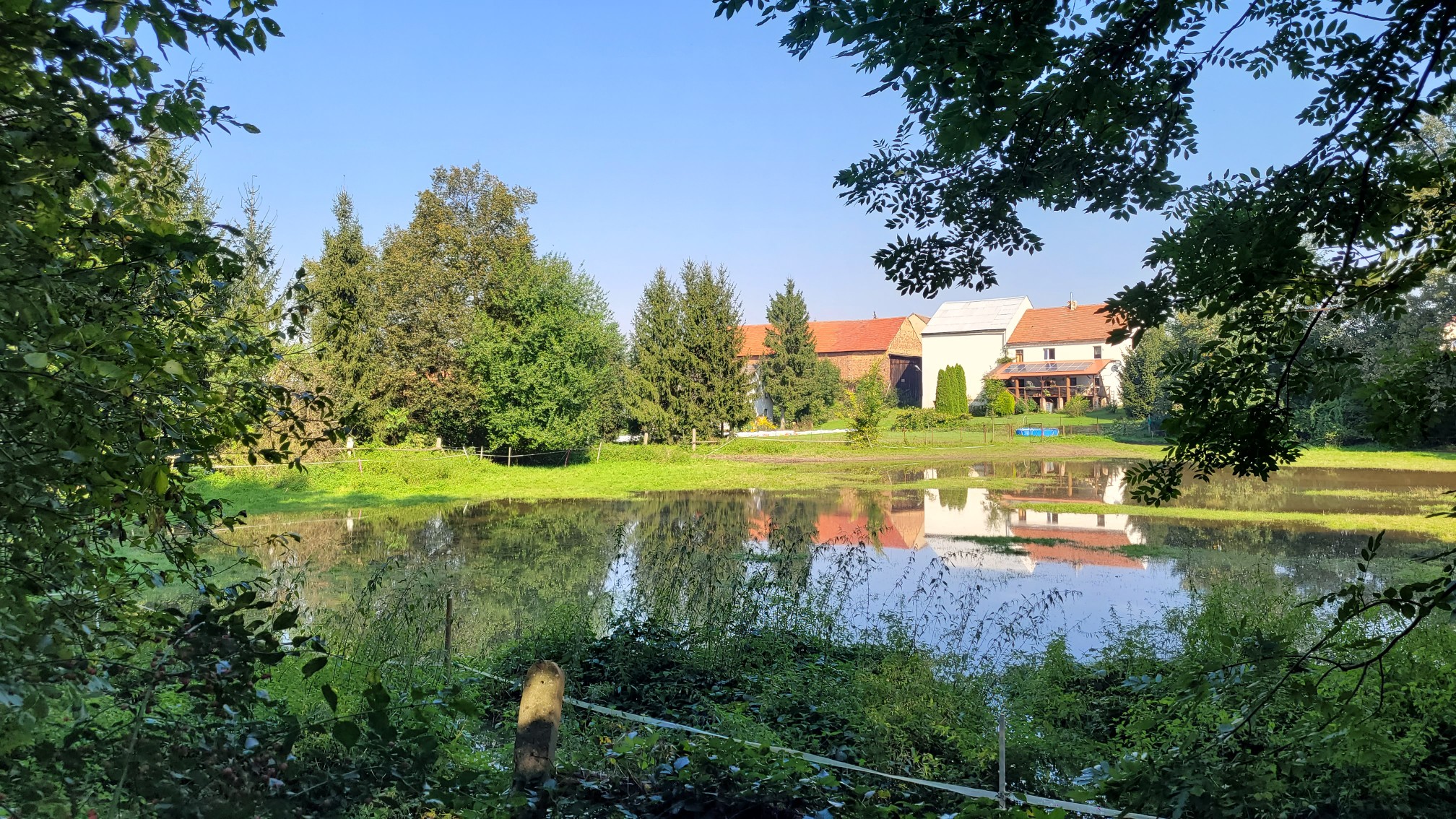 Na zdjęciu widać rozlewisko wynikające z wysokiego stanu Bystrzycy, która zalewała tereny leśne. W Milinie zagrożenie powodziowe obejmowało tylko domu przy ulicy Okulickiej, które są najniżej położone. Widoczny budynek znajdujący się przy ulicy Chłopskiej 36 to dawny budynek młyna. Obecnie miejsce zamieszkania pani Sołtys.